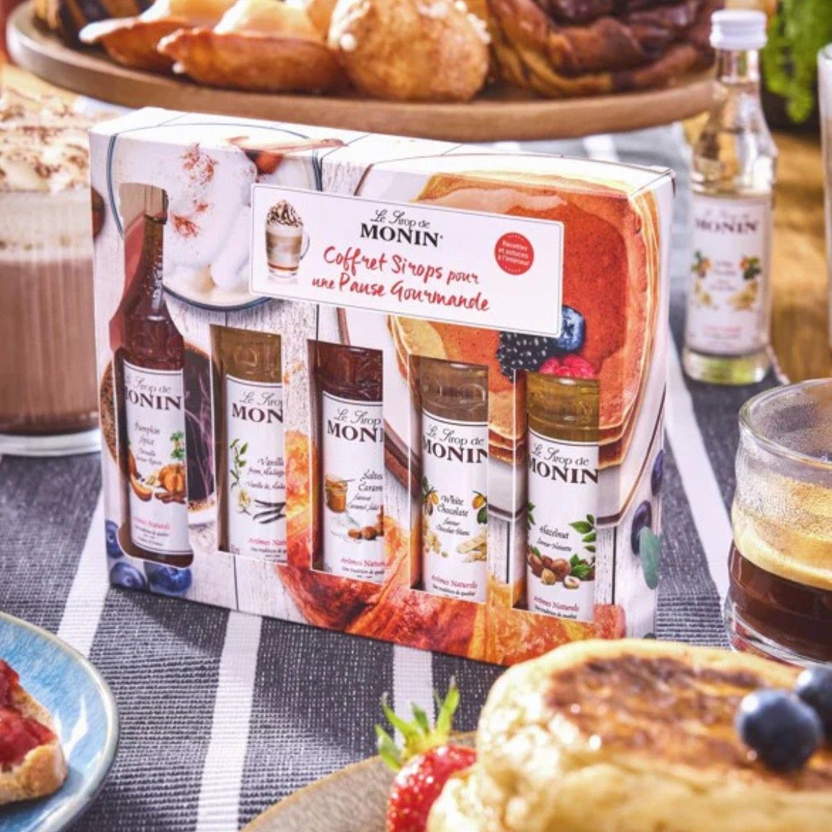 C’est le moment idéal pour se faire plaisir avec ce coffret de 5 mini sirops de 5cl ! Avec des goûts comme le pumpkin spice, la vanille de Madagascar, le caramel salé, le chocolat blanc et la noisette, vous avez de quoi personnaliser vos boissons favorites. Idéal pour vos cafés ou vos recettes de pâtisseries, ce coffret vous permet également de préparer des pancakes, des muffins ou un chocolat chaud revisité. De plus, il contient des recettes et astuces pour vous inspirer et vous aider à varier les plaisirs. Un cadeau parfait pour tous ceux qui souhaitent recréer l'ambiance d'un "coffee shop" à la maison