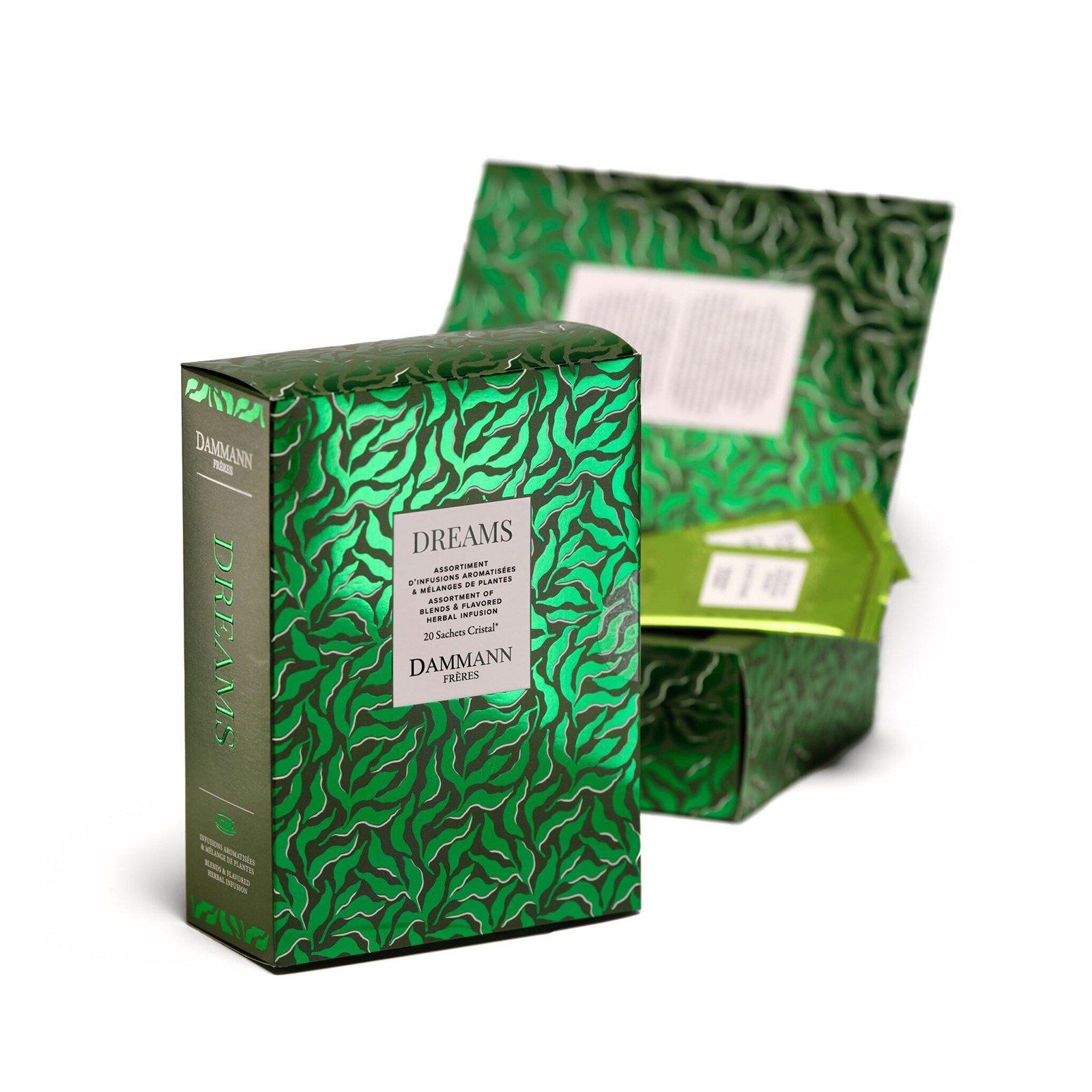Lovés au cœur d’un coffret au joli décor de feuillage ondoyant très chlorophylle, l’assortiment parfait pour amateurs d’infusions.Cinq mélanges aux liqueurs végétales et aux notes fruitées, épicées ou gourmandes. Un parcours dépaysant dans l’univers incroyablement varié des saveurs offertes par les plantes à infusion. Poids net : 40 g. Dimensions : L/h/p : 17/6/13 cm 20 sachets Cristal® enveloppés : - Happy dreams- Lucky Thyme- Tisane des merveilles-Tisane fruits rouges- Tisane Fidji