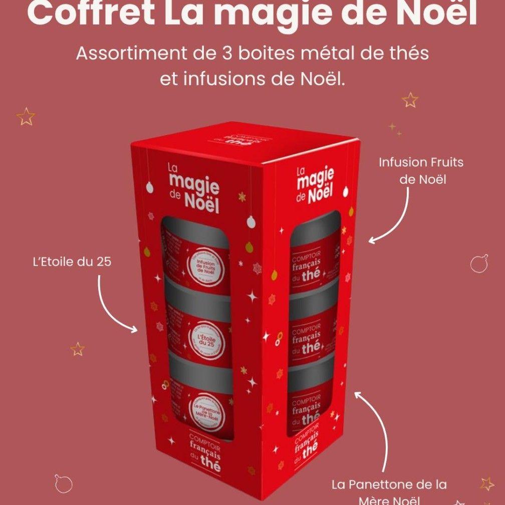 Assortiment de 3 boites métal 25g de thés et infusion de Noël.