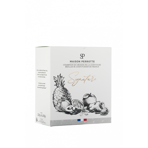 Le Chef Stéphan Perrotte, champion du monde de confiture, a imaginé pour vous ce coffret , composé de 4 recettes signature. Des parfums et des associations uniques qui surprendront et raviront les palais les plus gourmands.