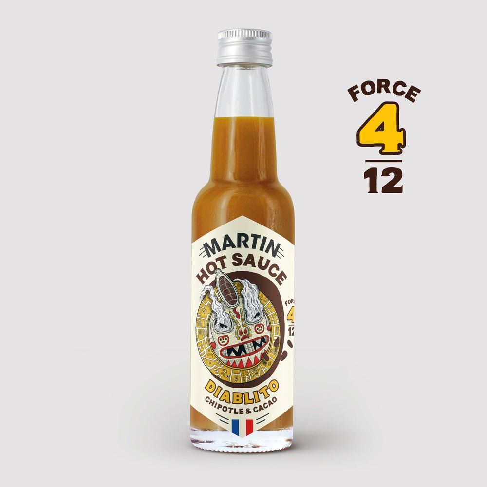 Avec la Diablito, on a remonté le temps de 500 ans pour piquer une idée aux Incas : leur boisson sacrée, mélange de cacao, de piment et d’épices. On a transformé ce rituel sacré en une sauce unique, où le Chipotle fumé s’allie au cacao et au lait de coco pour un équilibre à la fois surprenant et gourmand. Une création qui réveille un secret d’autrefois… une recette ancestrale à la sauce Martin.