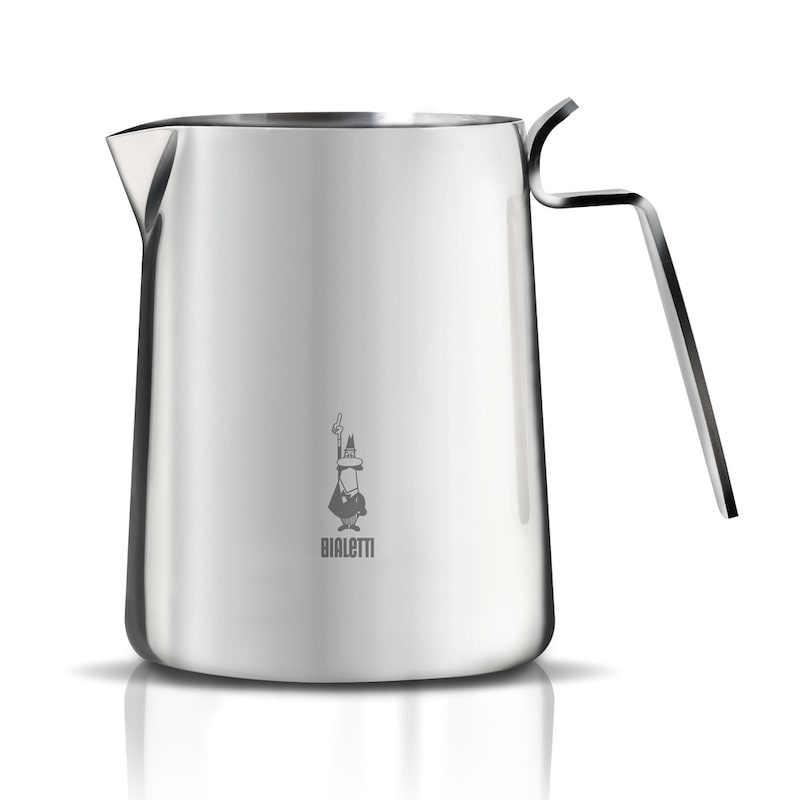 Le milk pitcher Bialetti est un pichet en acier inox, pratique et résistant, idéal pour chauffer le lait aussi bien sur la cuisinière qu'avec la lance à vapeur de la Mokona.