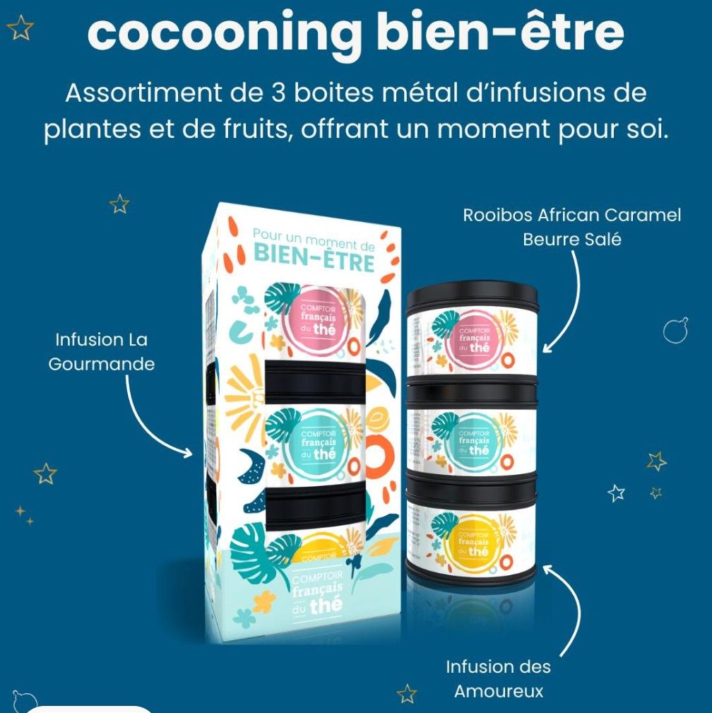 Assortiment de 3 boites métal 25g d’infusions de plantes et de fruits, pour un moment pour soi.